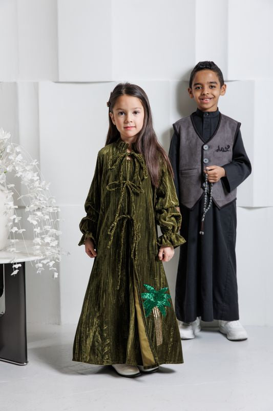 Regular price 35.000 KWDRegular priceUnit price / perSale price 35.000 KWDolive-green velvet kaftan🌴