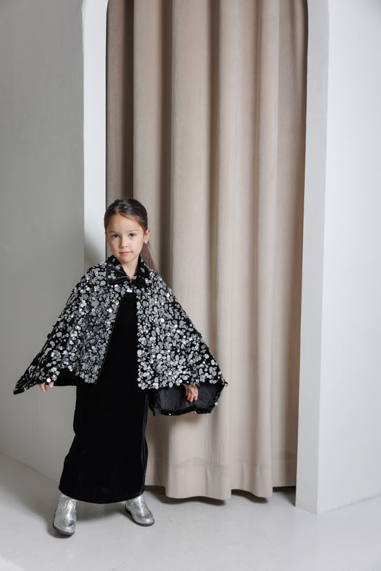 Silver sequin cape